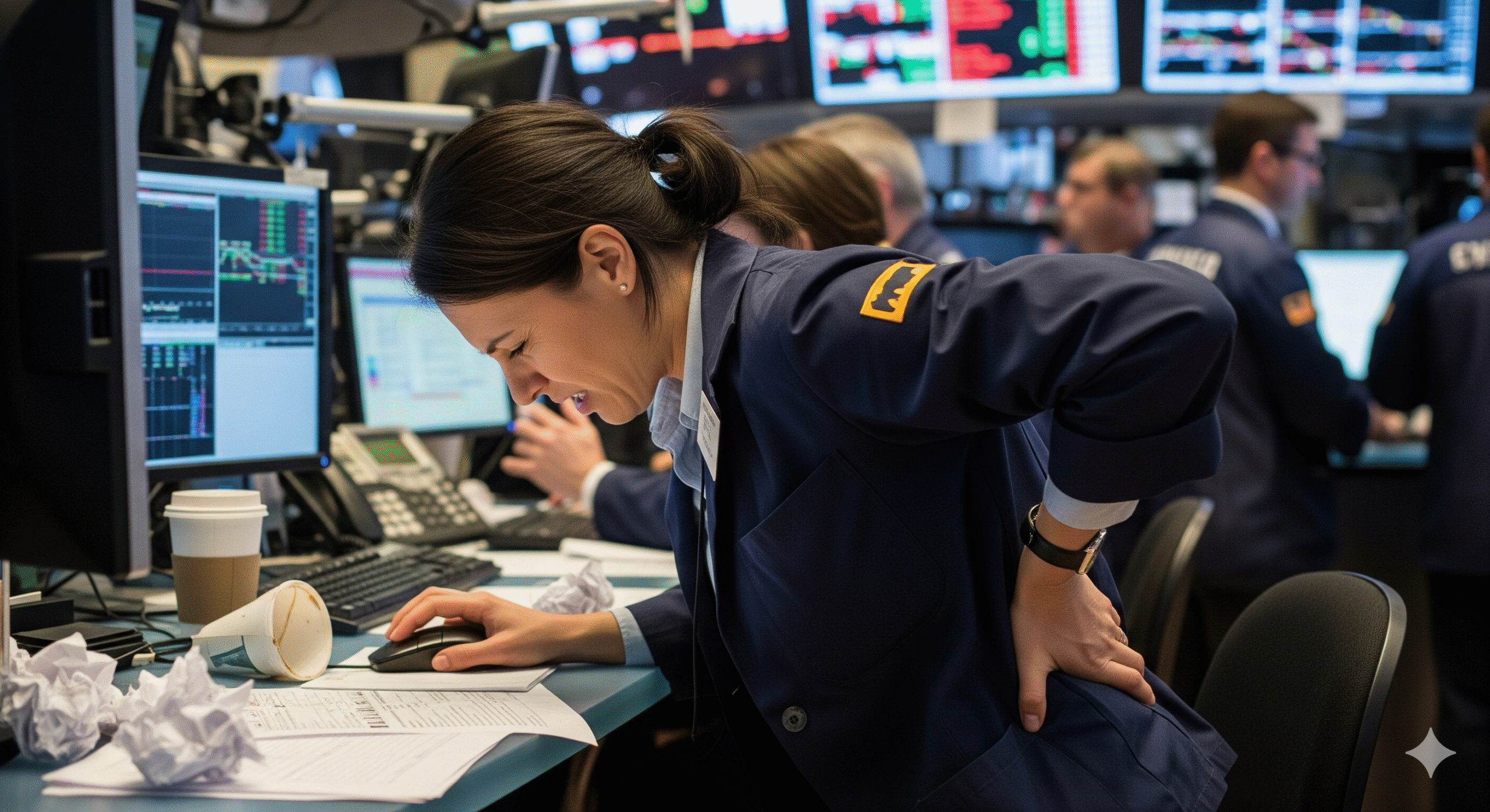 Online traders often sit in front of screens for 8–12 hours a day, tracking charts and analyzing data. Prolonged sitting can lead to: